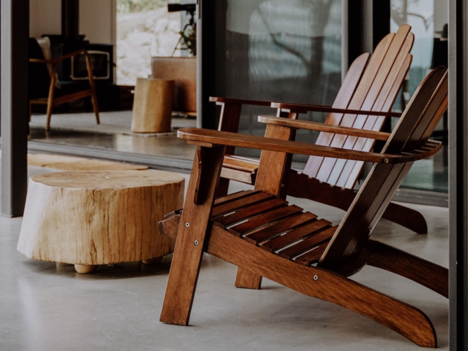 To fit the cabin into the space we unfortunately had to clear a couple of large trees but we used those to make an outdoor dining table and a large seat that overlooks the Gold Coast. Seeing us gather at these two spots on an afternoon with black cockatoos flying overhead is something special.